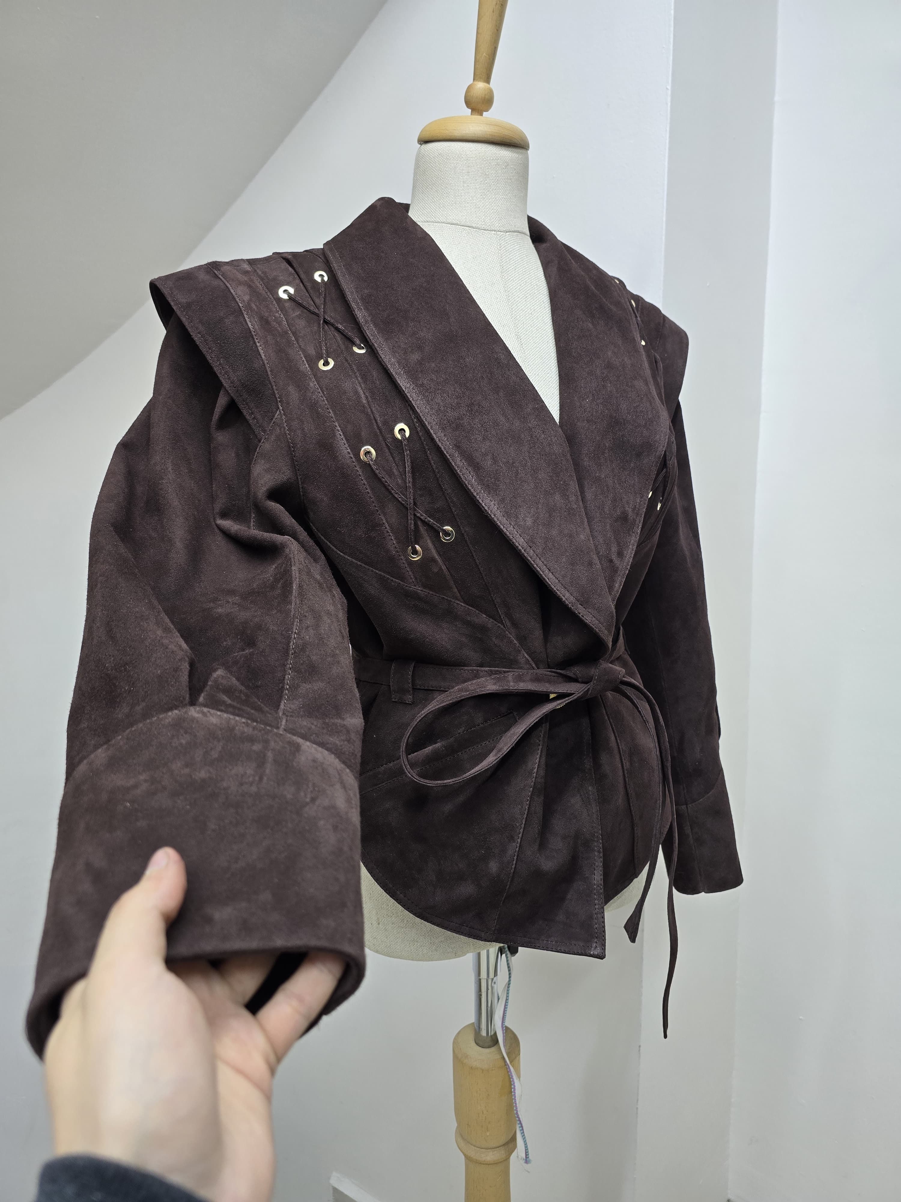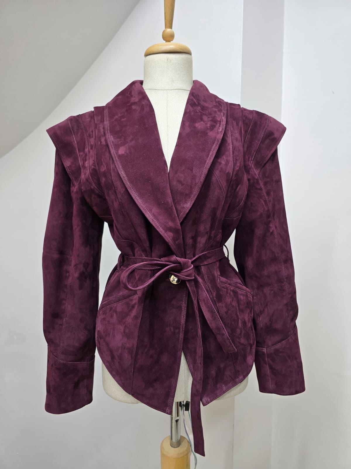 Sacou din piele întoarsă naturală – Burgundy Elegant
