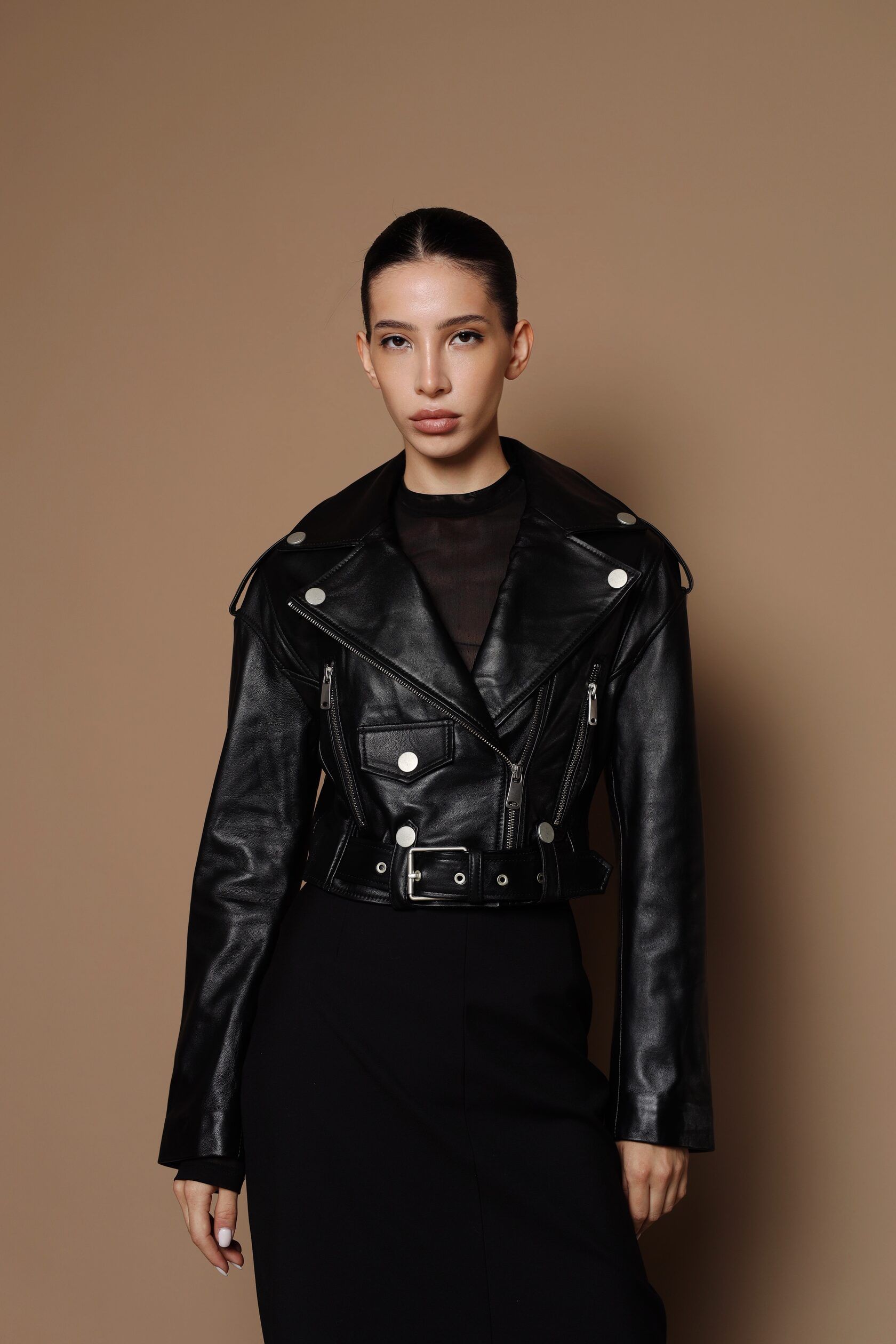 BLACK LEATHER CROPPED JACKET – EDGY & CHIC