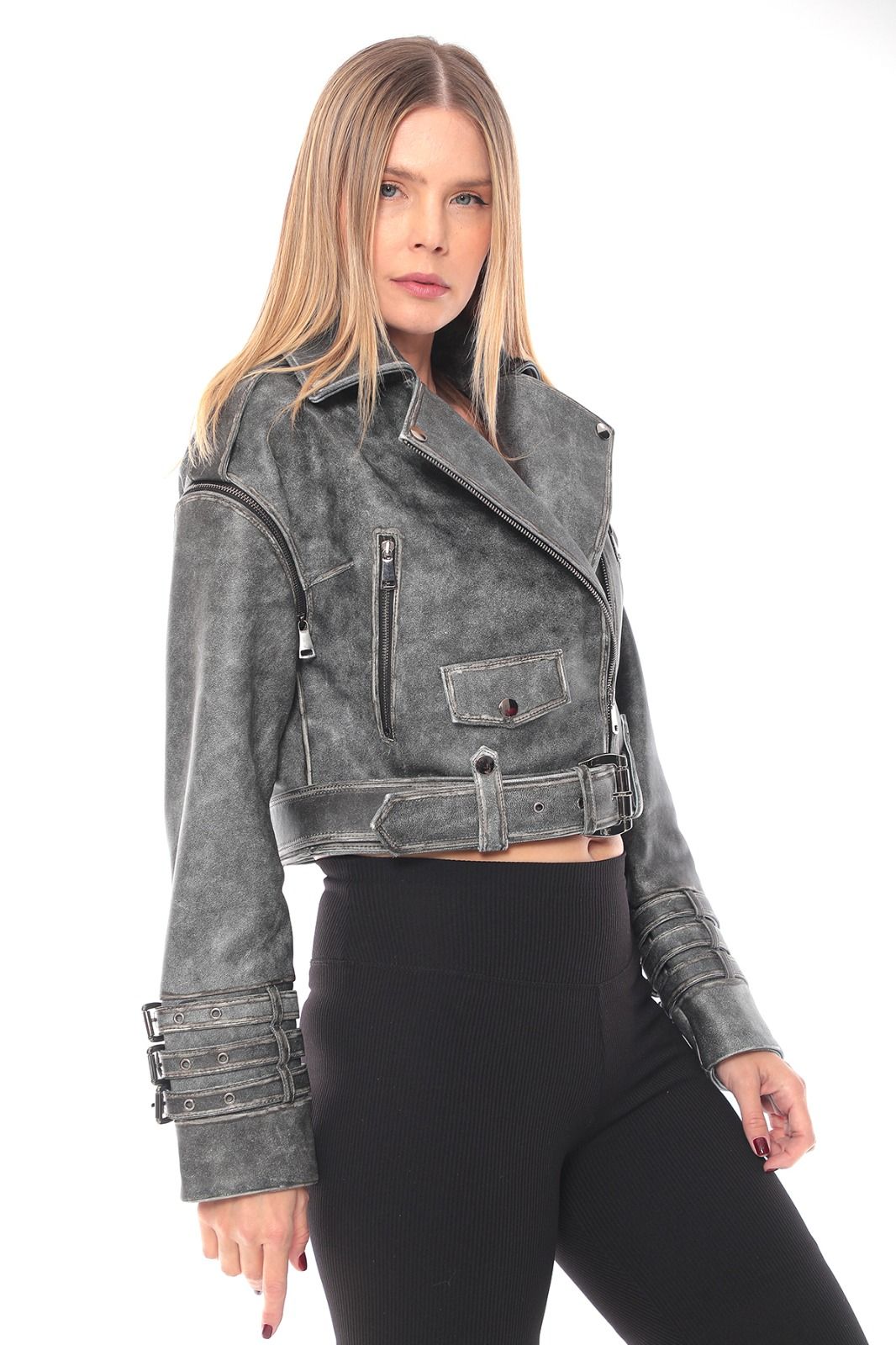 Z20 Hunter – Cropped Textured Leather Biker Jacket