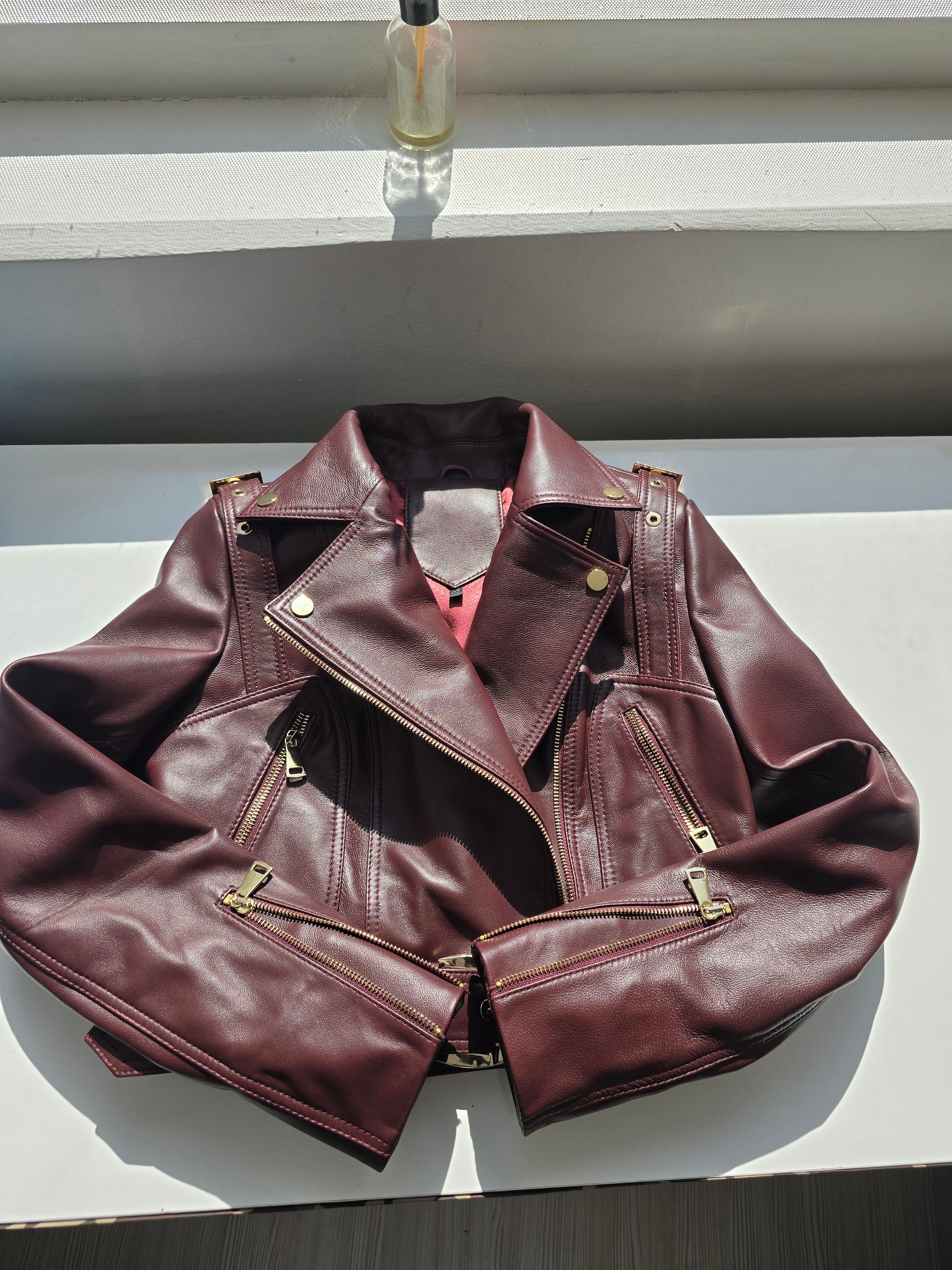 Jachetă de biker din piele nappa Burgundy excepțională