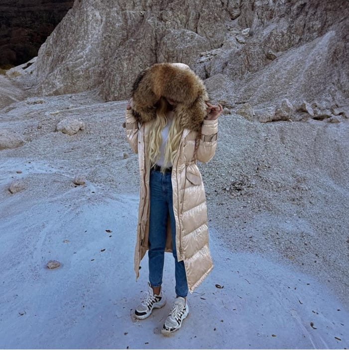 Eleganță Chic – Parka din blană de vulpe champagne