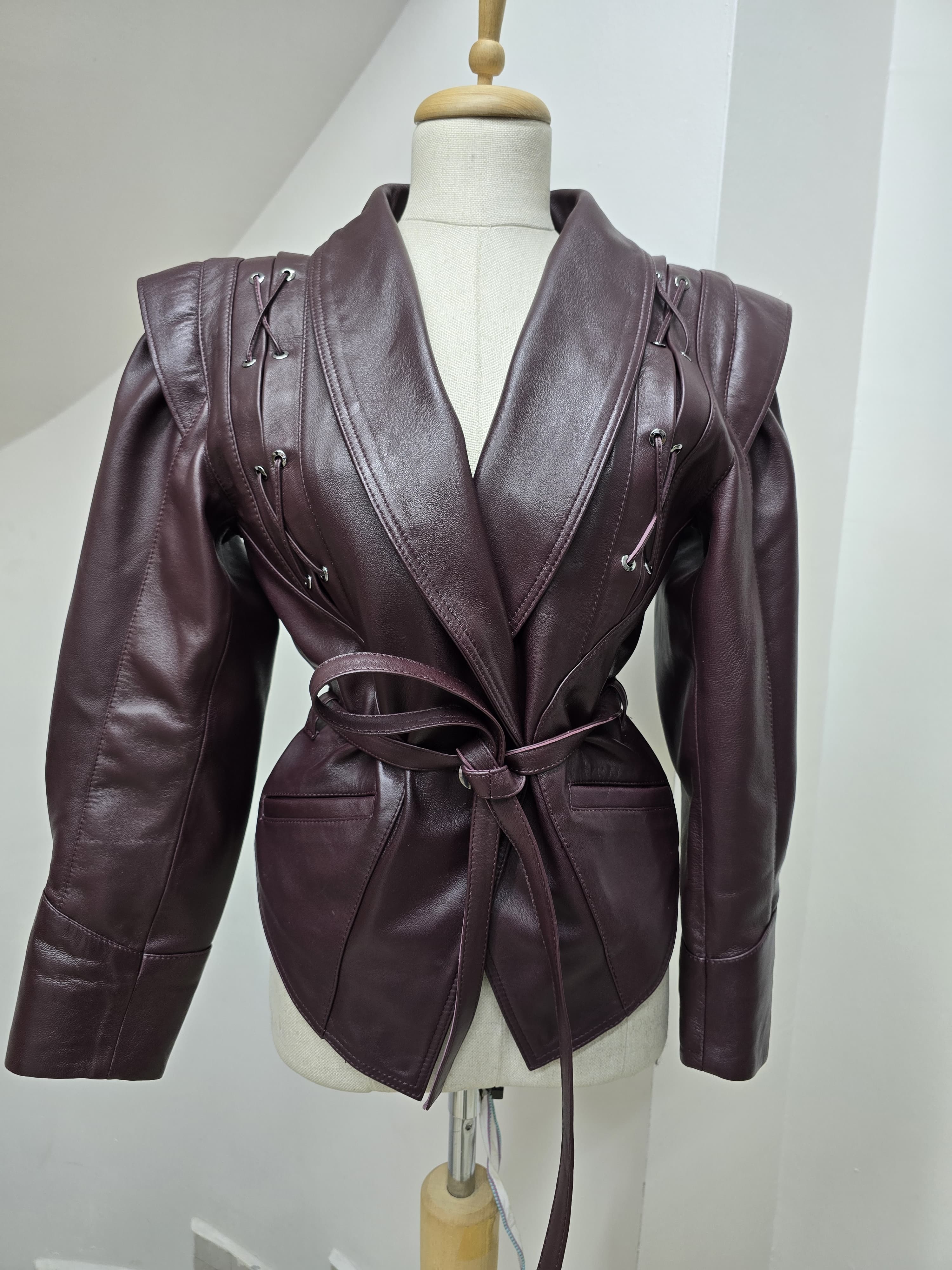Shadow Grace – Sculpted Leather Jacket in Deep Plum