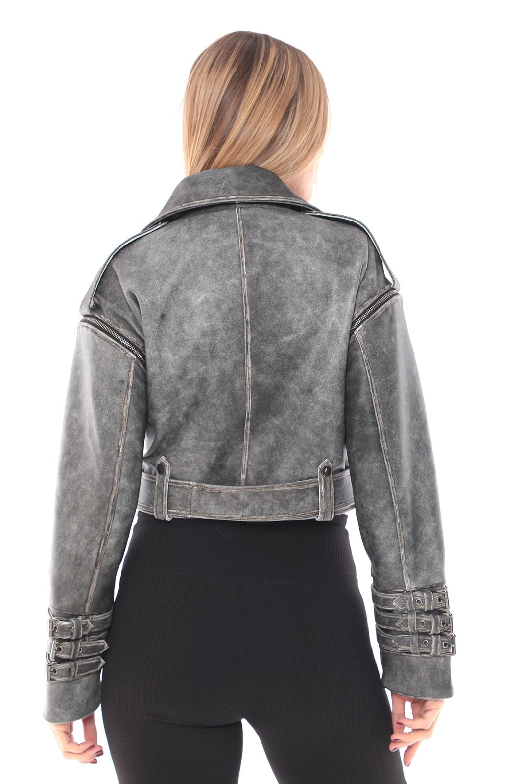 Jachetă scurtă din piele gri – stil urban cu atitudine