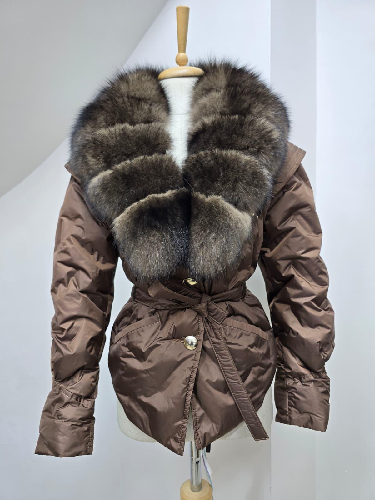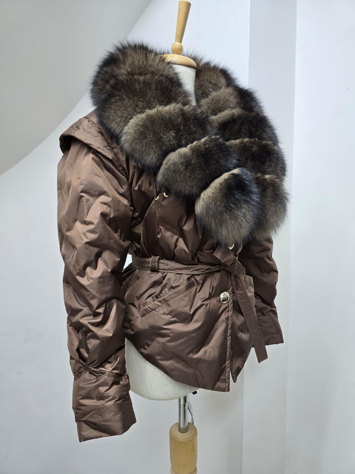 Geacă scurtă maro cu blană naturală – eleganță și căldură într-o singură piesă