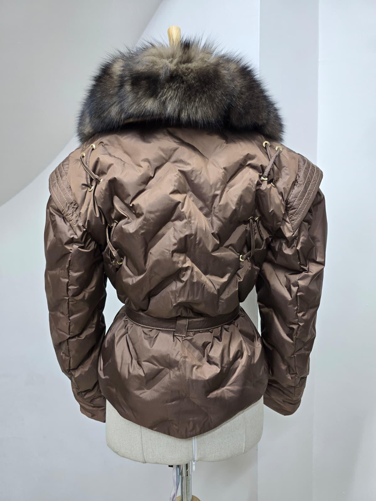 Această geacă scurtă este realizată din material premium, cu umplutură călduroasă și guler spectaculos din blană naturală bogată. Designul este pus în valoare de talia marcată cu cordon și detaliile feminine care evidențiază silueta.