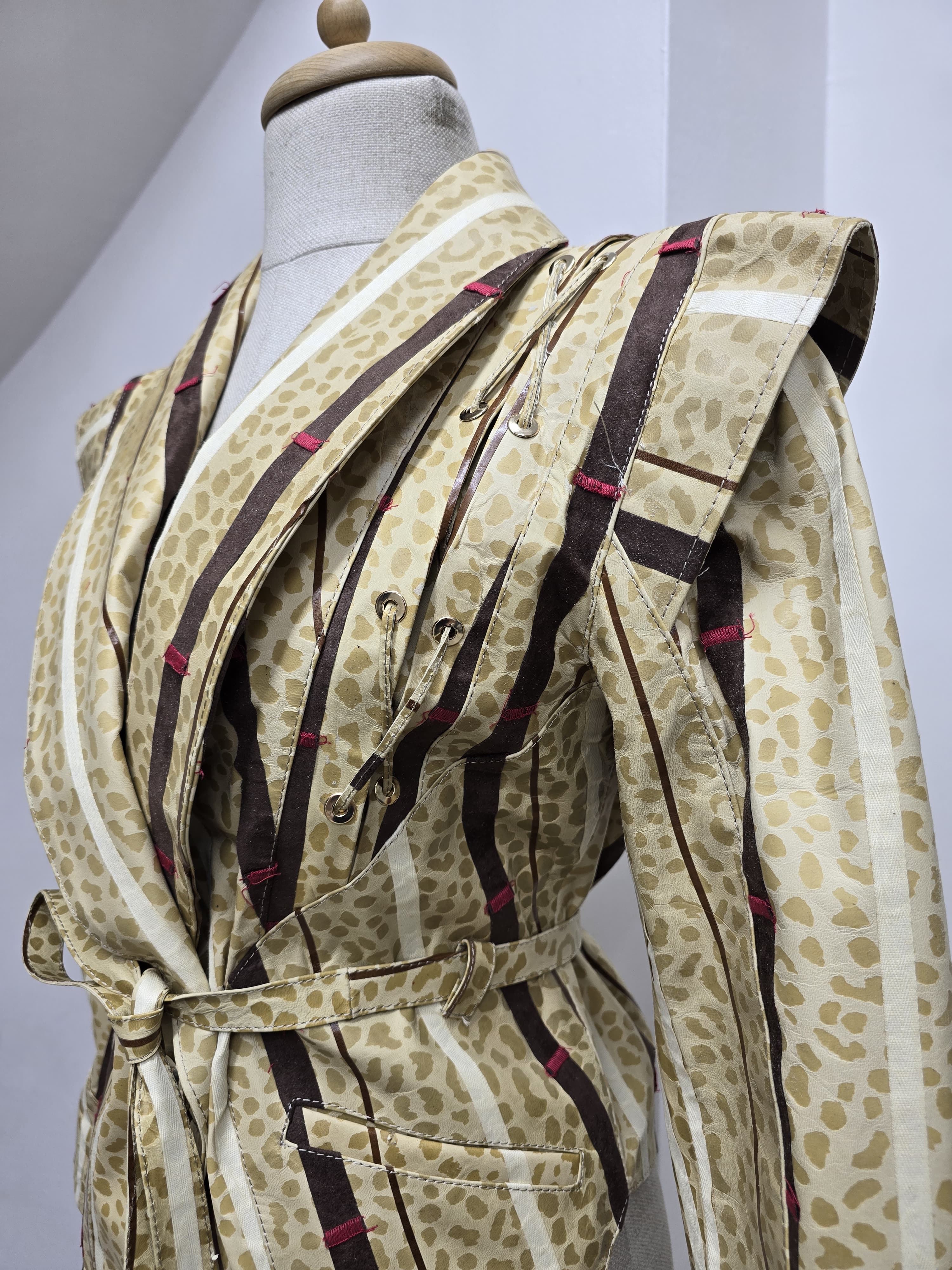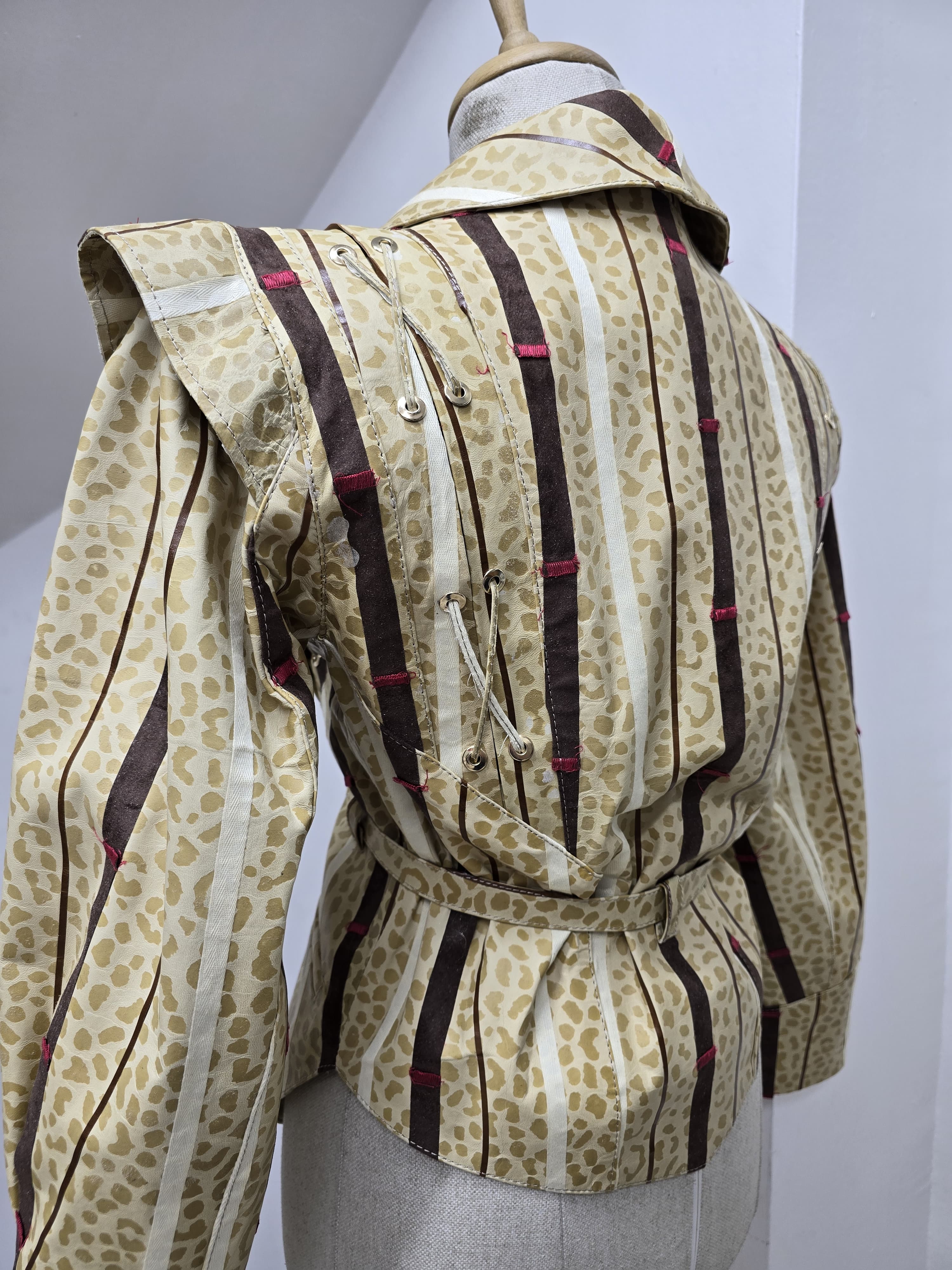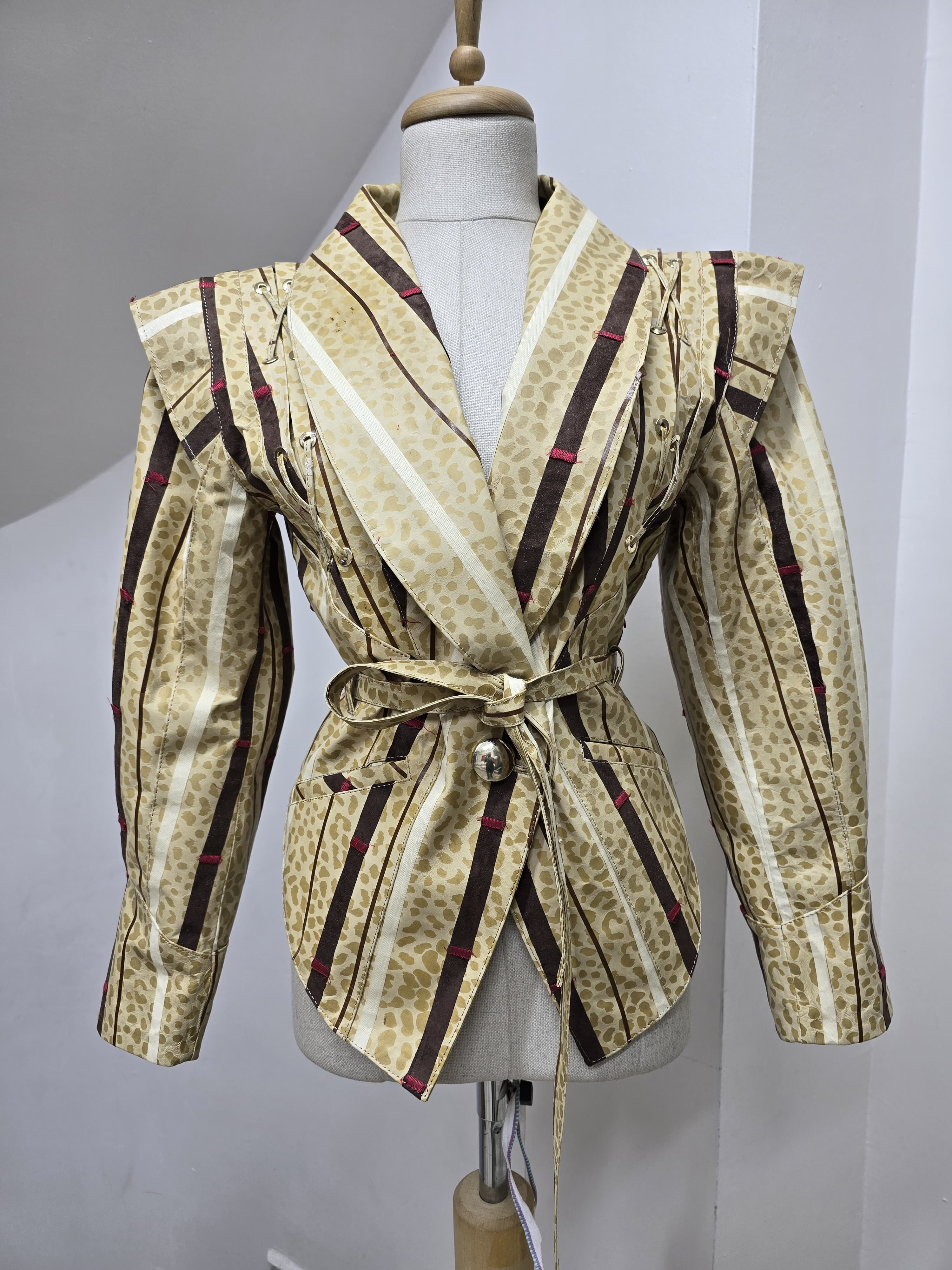 Lightweight, stylish, and bold – the Savanna Stripe Jacket brings together safari vibes with modern tailoring. Featuring a belted waist, structured shoulders, and unique striped patterns, it's the perfect jacket for standout looks.